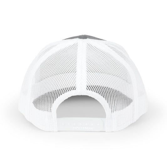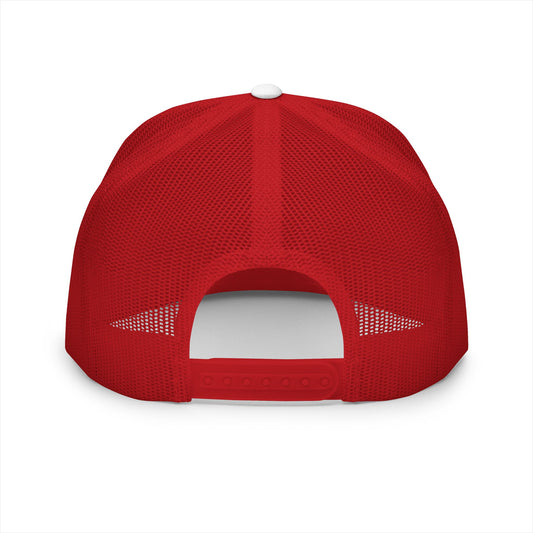 BILLY 5 Panel Flat Bill Trucker Cap (White Vertical Logo - Embroidery) — AVAILABLE IN 13 COLORS