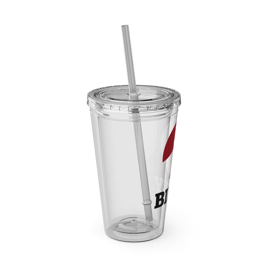 BILLY Sunsplash Tumbler with Straw, 16oz (Red/Black Vertical Logo)