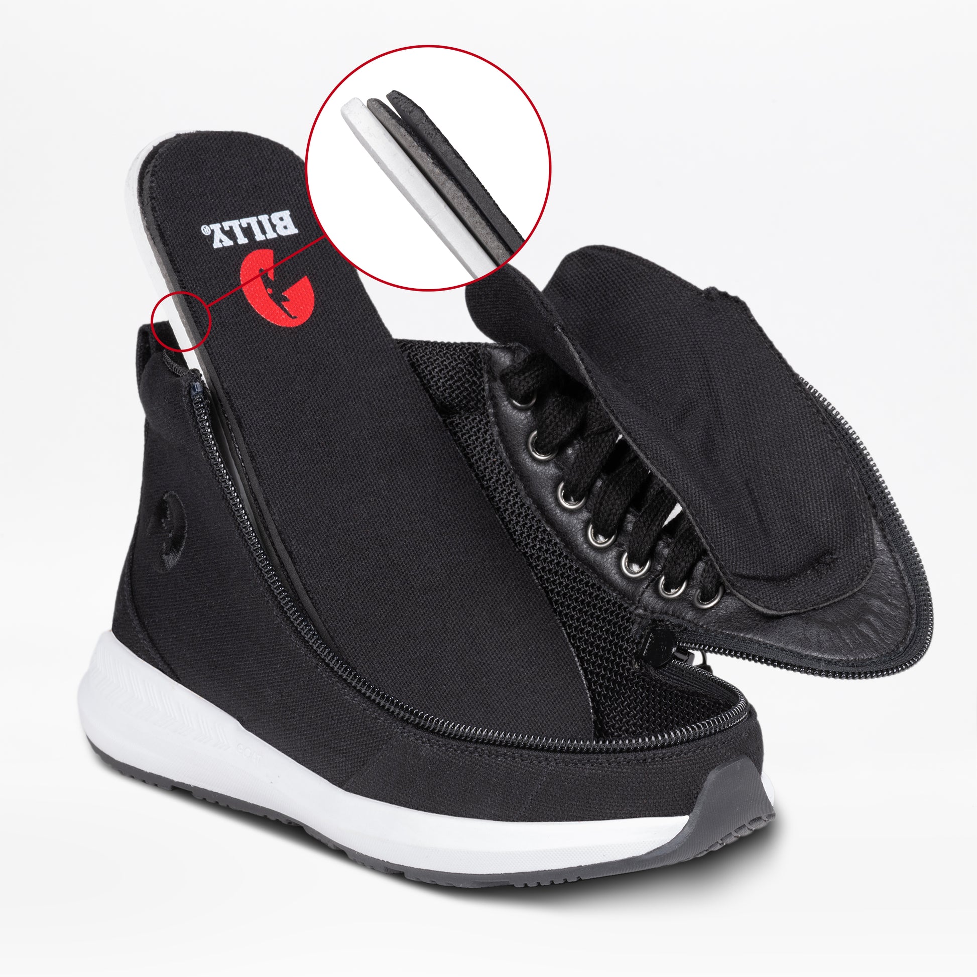 Step In! to innovation. Made in collaboration with Boston Orthotics & Prosthetics, the Black BILLY Goat Classic High Top AFO-Friendly Shoes are sure to provide the functional solution you have been looking for. Along with the full-wrap zipper for convenient donning and doffing, the Goat sets itself apart making it our most AFO-friendly solution.