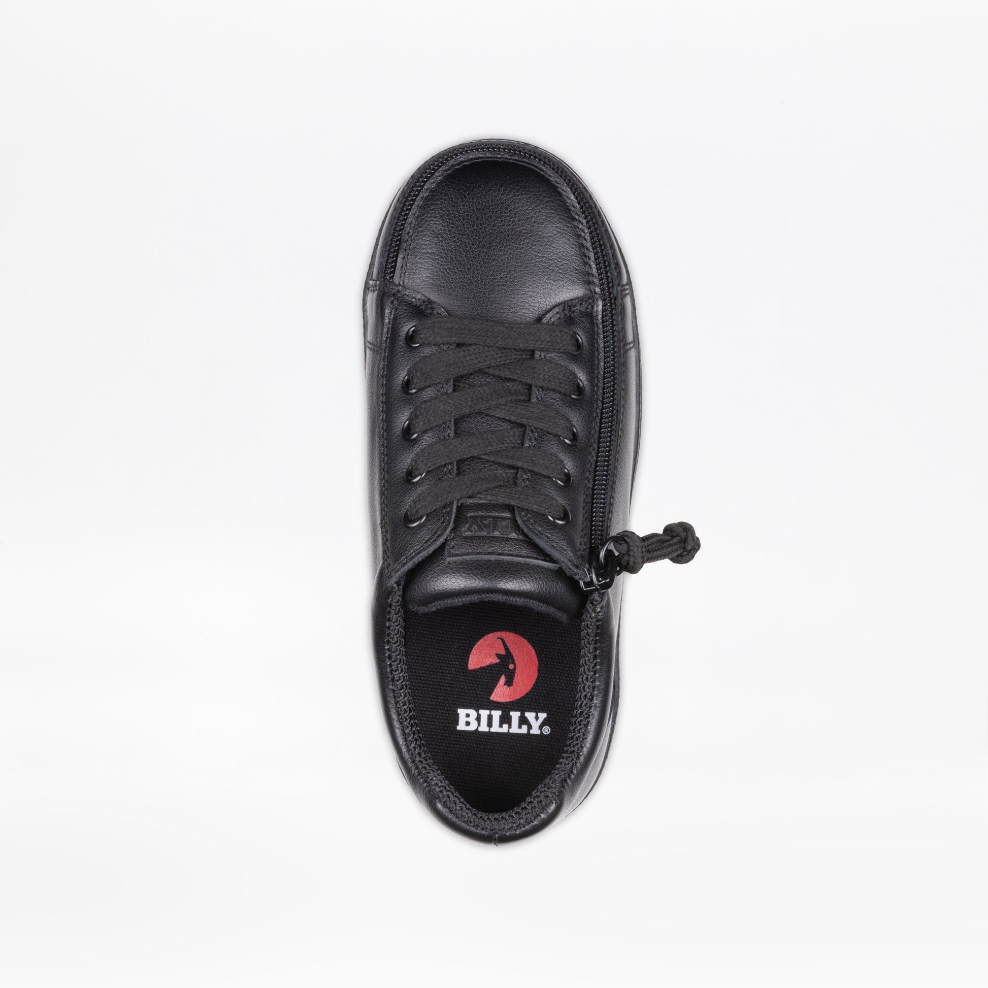 The Black to the Floor Leather BILLY Classic D|R II Low Top AFO-friendly shoes consist of three widths: Medium, Wide, and Extra-Wide. The laces on these shoes are functional for an adjustable fit. The thick knit polyester fabric upper lining adds durability for increased tear resistance. The full-wrap zipper closure allows for unobstructed fun and easy entry into the shoe. The insole board and outsole rubber compound helps withstand toe and heel striking. And the two removable insoles (3mm each) provides adjustable depth for custom orthotics.