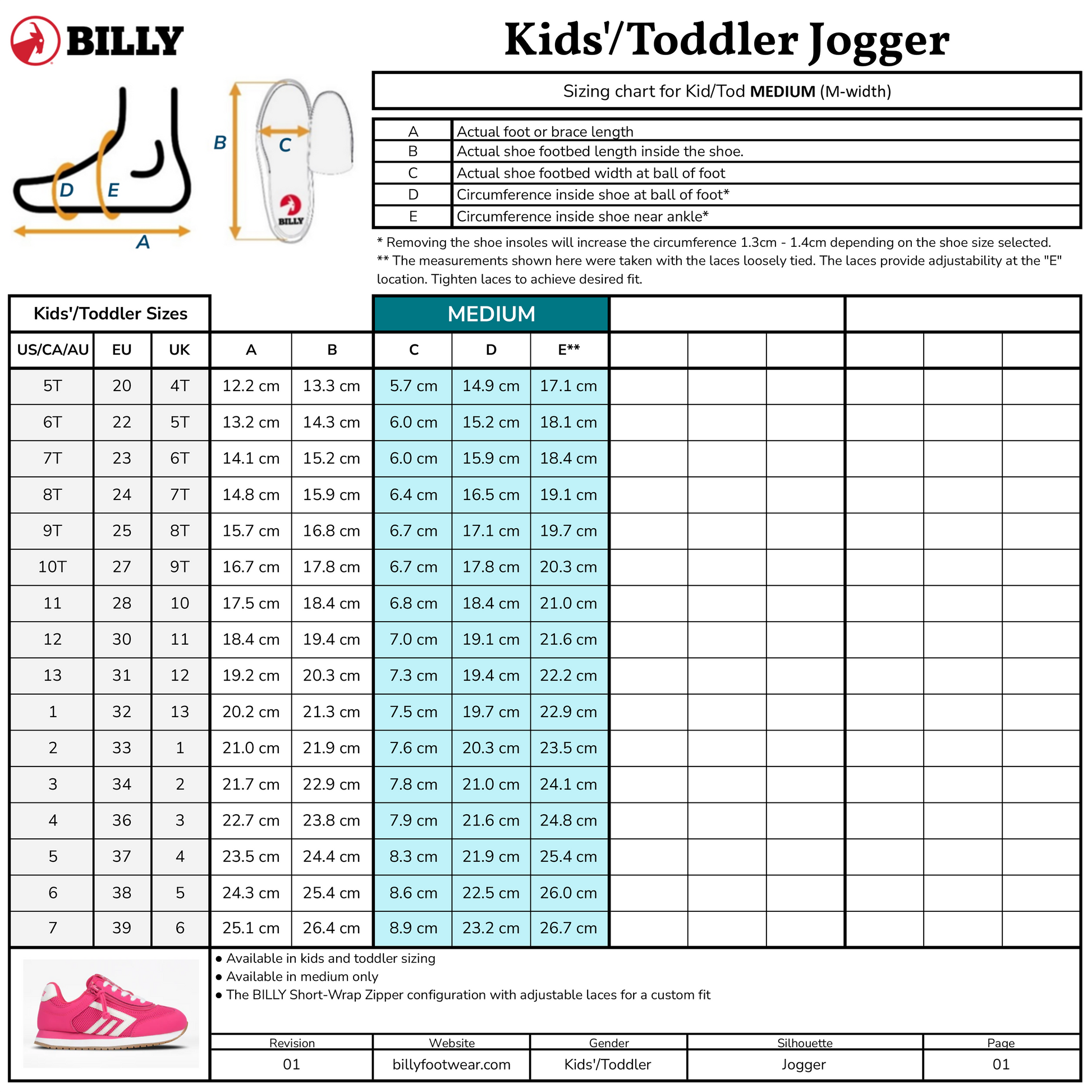 All BILLY Sizing Charts: Click here to see our complete collection of sizing charts for Women's, Men's, Kid's and Toddler sizing.