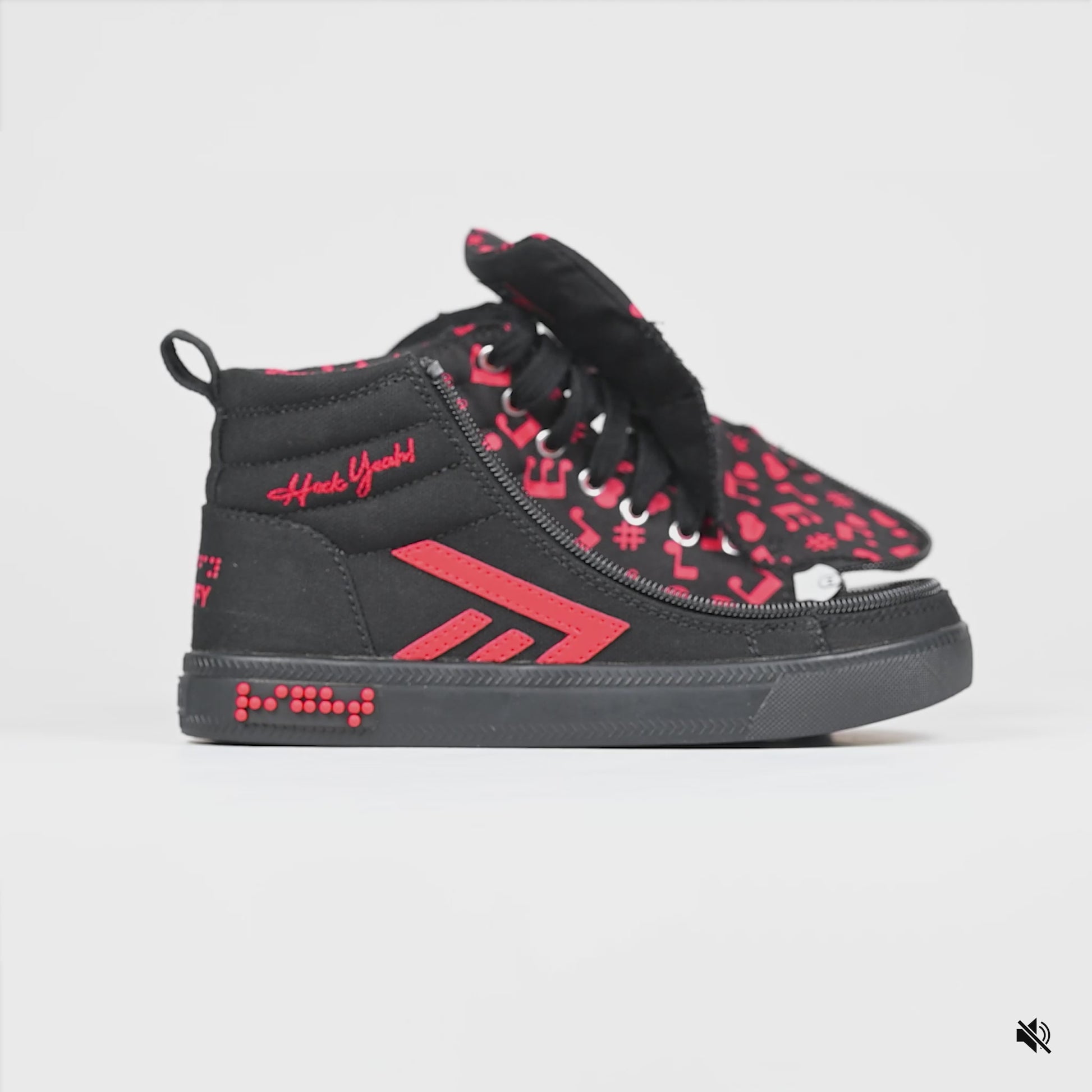 Designed in collaboration with Kodi Lee, singer, songwriter, and Season 14 winner of America’s Got Talent, the Kodify Black BILLY CS High Tops are a silhouette to behold. With the vibrant red, highlights, braille on the outsole, and the BILLY iconic wraparound zipper for unmatched convenience, you are going to love these shoes. Heck Yeah!
