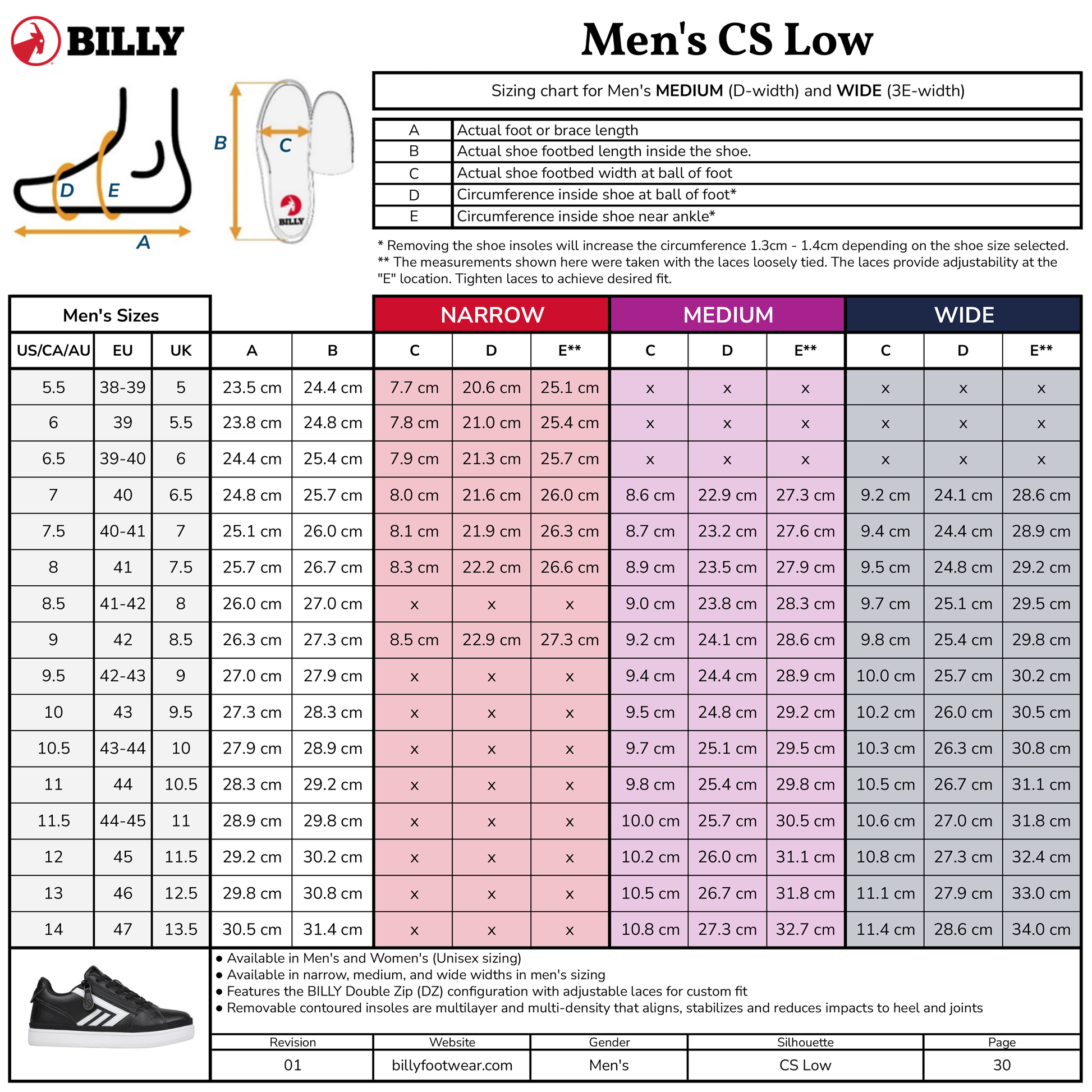 All BILLY Sizing Charts: Click here to see our complete collection of sizing charts for Women's, Men's, Kid's and Toddler sizing.