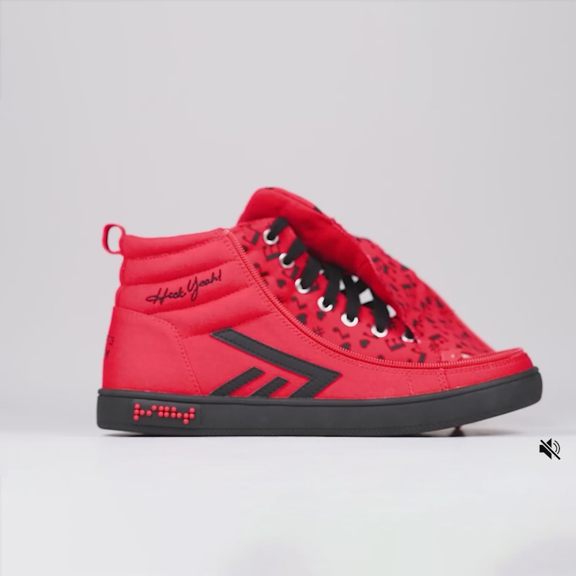 Designed in collaboration with Kodi Lee, singer, songwriter, and Season 14 winner of America’s Got Talent, the Men’s Kodify Red BILLY CS High Tops are a silhouette to behold. With the vibrant red, bold black highlights, braille on the outsole, and the BILLY iconic wraparound zipper for unmatched convenience, you are going to love these shoes. Coming with functional laces for a custom fit and removable insoles for added depth, the shoes are all the more inclusive. Heck Yeah!