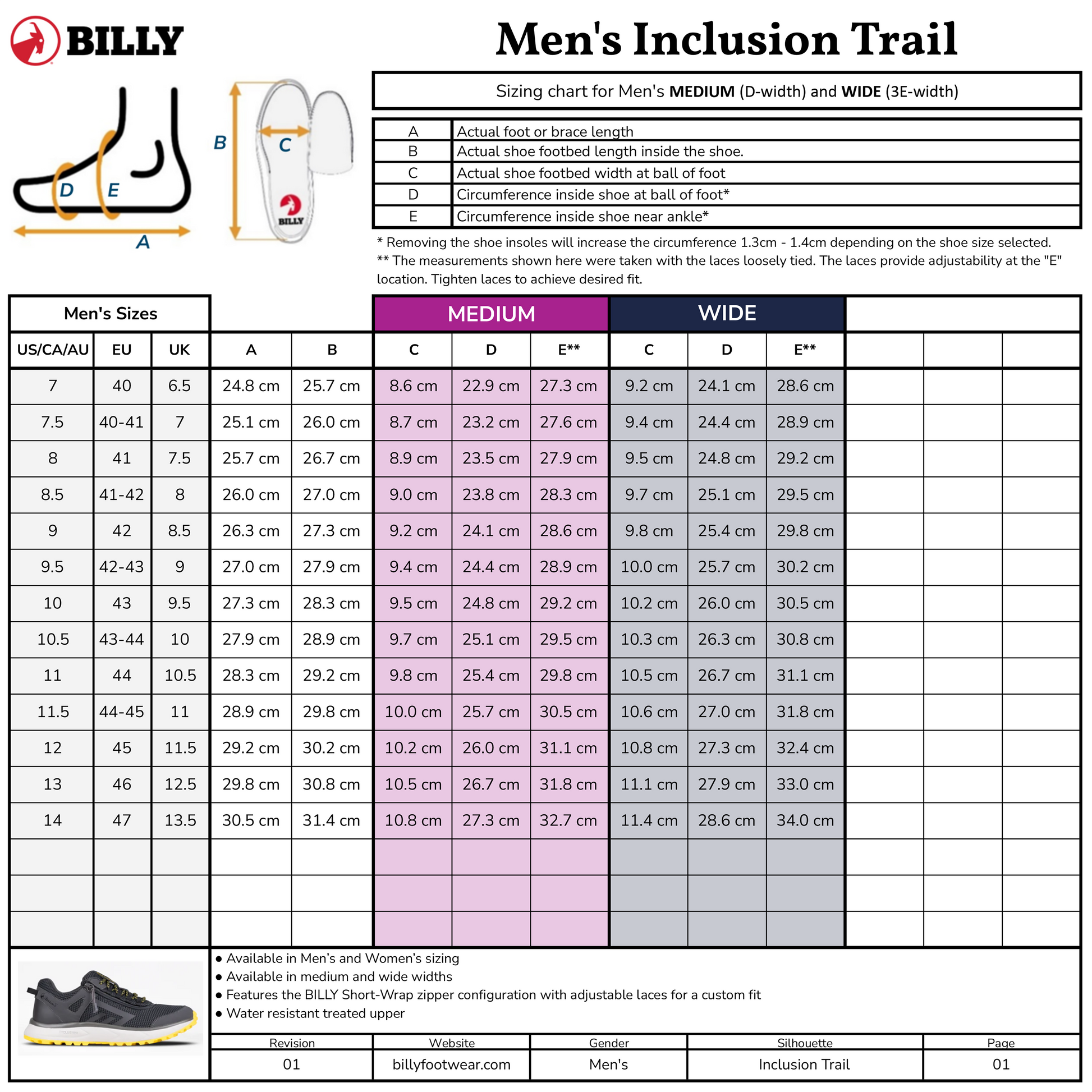 All BILLY Sizing Charts: Click here to see our complete collection of sizing charts for Women's, Men's, Kid's and Toddler sizing.