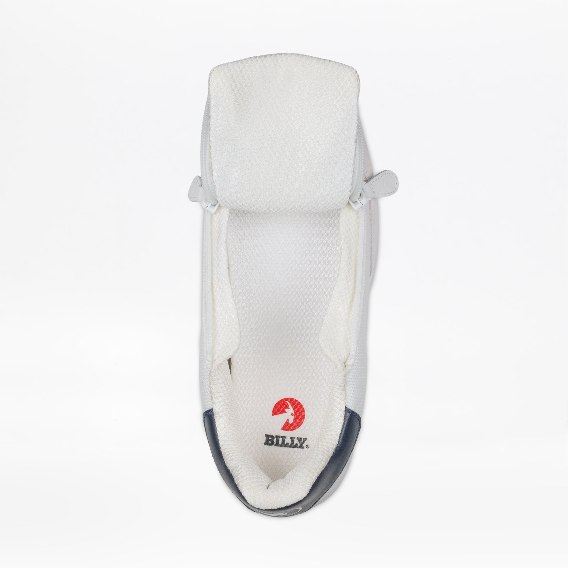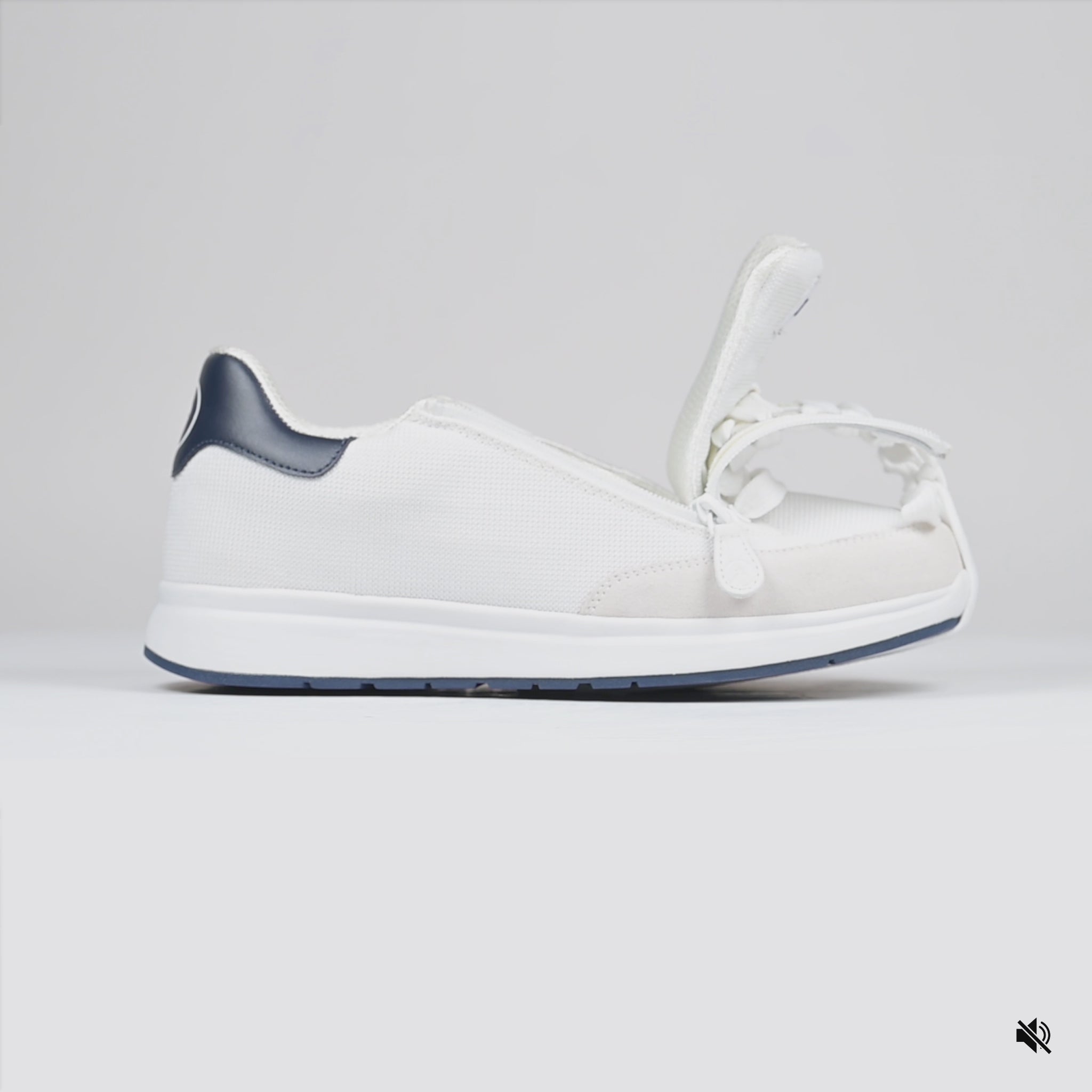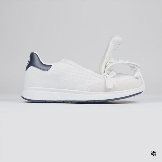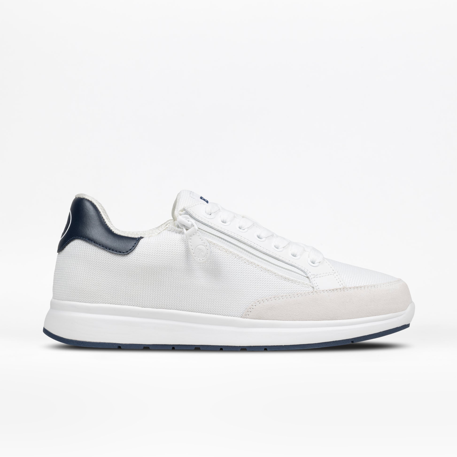 You cannot go wrong with casual men’s fashion. These stylish Men's White/Navy BILLY Comfort Court shoes tout zippers on both the medial and lateral sides making donning and doffing simple. No more stuffing your feet into shoes—just step in with ease.