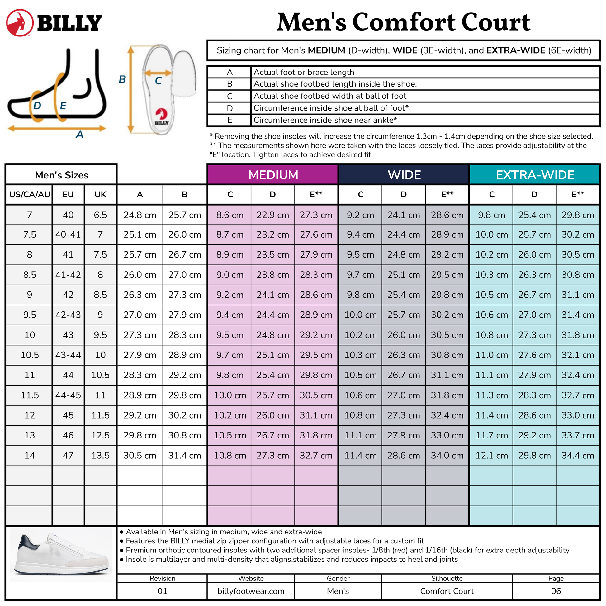 All BILLY Sizing Charts: Click here to see our complete collection of sizing charts for Women's, Men's, Kid's and Toddler sizing.