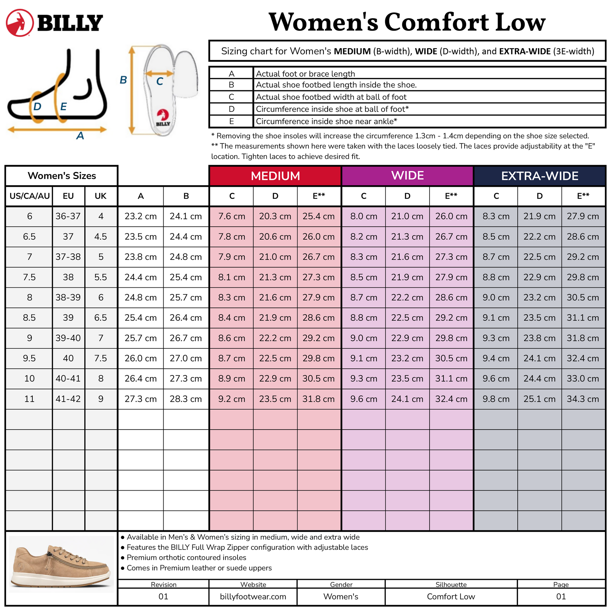 All BILLY Sizing Charts: Click here to see our complete collection of sizing charts for Women's, Men's, Kid's and Toddler sizing.