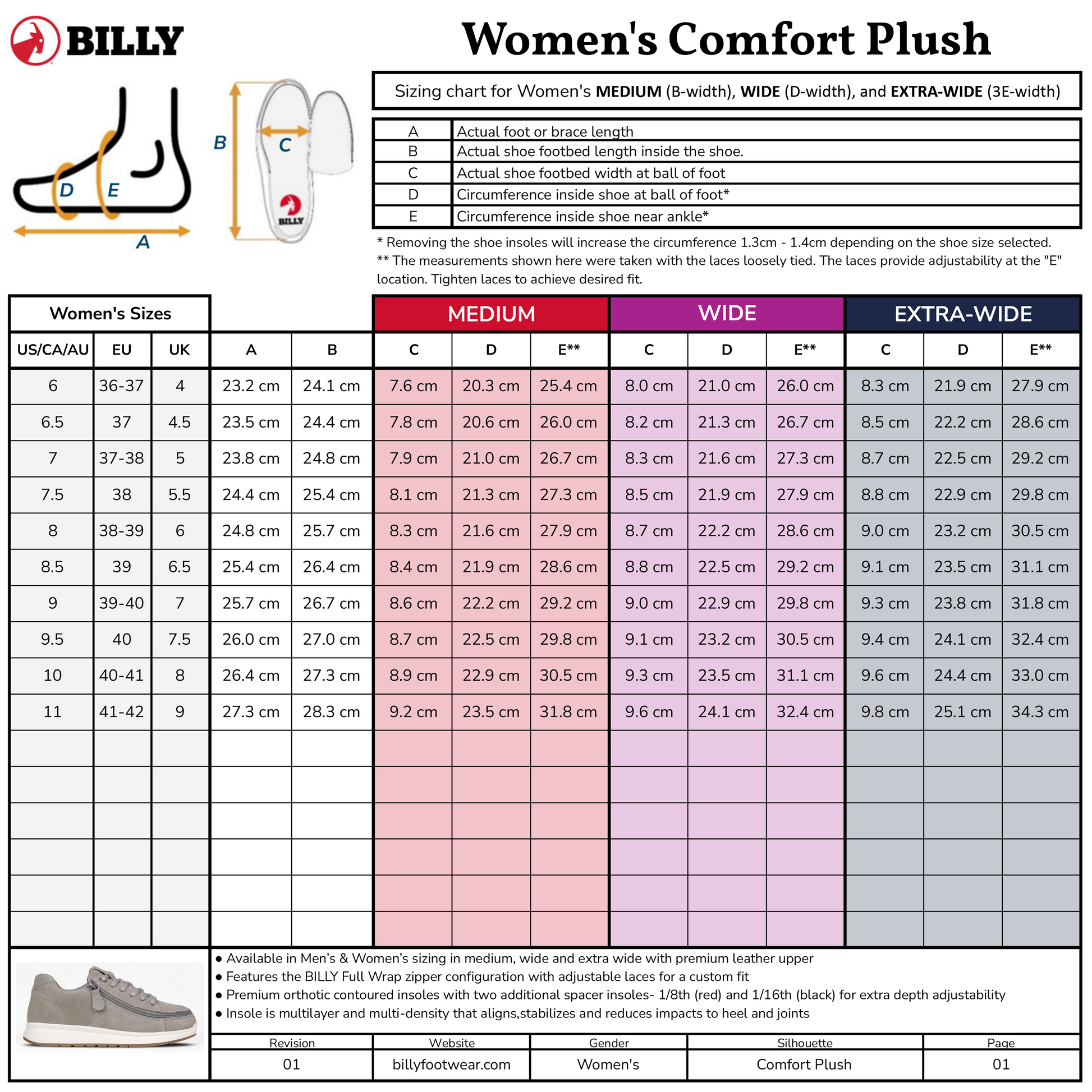 All BILLY Sizing Charts: Click here to see our complete collection of sizing charts for Women's, Men's, Kid's and Toddler sizing.
